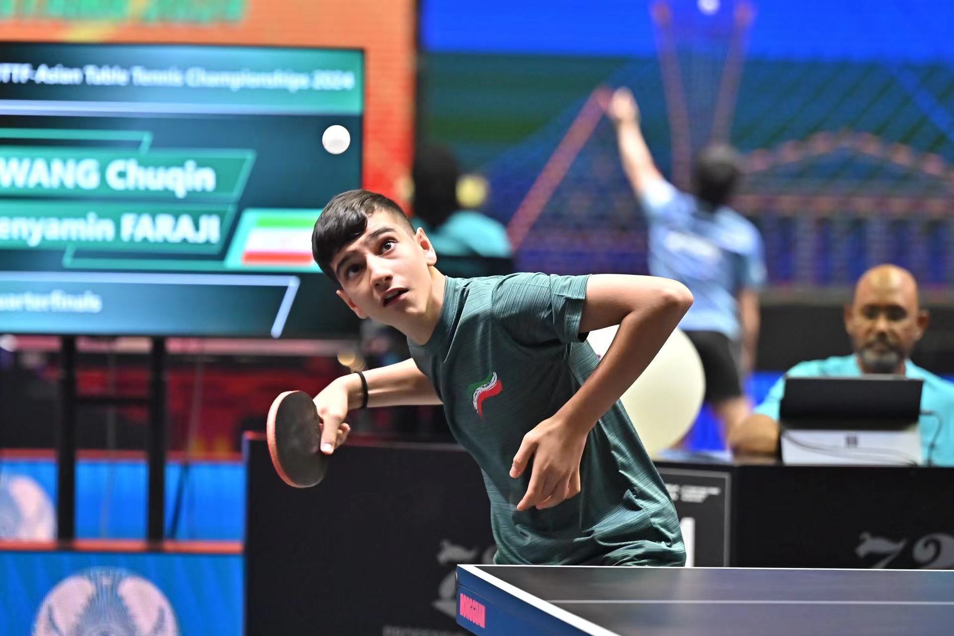 北京技术10月8日,乒乓球亚锦赛男团比赛,中国男团对阵伊朗男团。第一盘比赛,王楚钦首秀输球,2比3不敌14岁的伊朗小将本雅明·法拉吉。